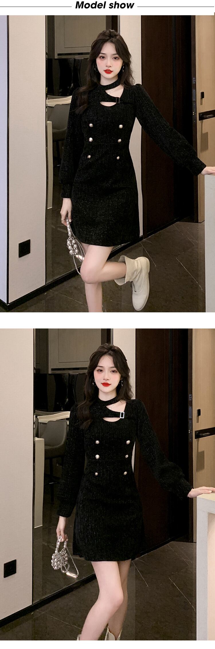 ミニ ブラック ストリート スプリング 春物 オータム 秋物 Oネック シルク MingJieBiHuo42568708528