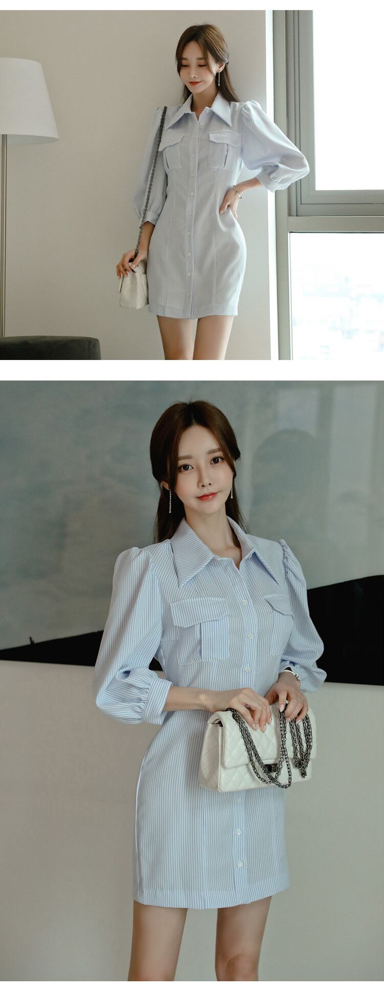 ミニ 大人ガーリー スウィート キュート カジュアル エレガント スプリング 春物 オータム 秋物 Aライン ストライプ ビンテージ MingJieBiHuo36662394007