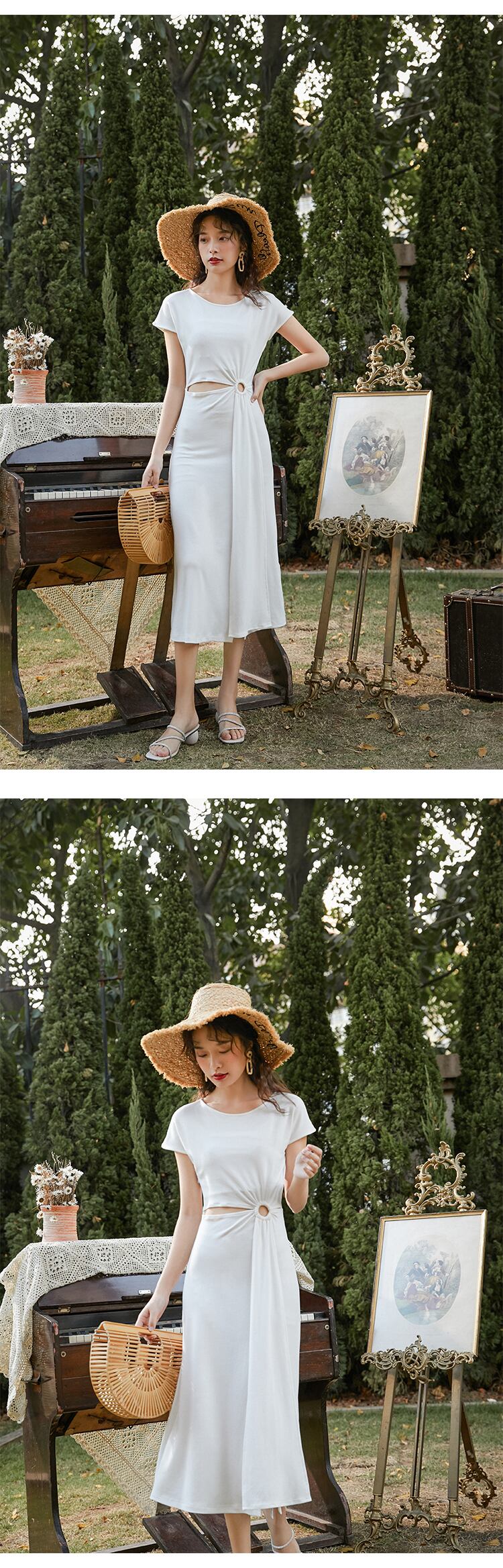 ロング カジュアル Oネック Aライン ビンテージ MingJieBiHuo67452194395