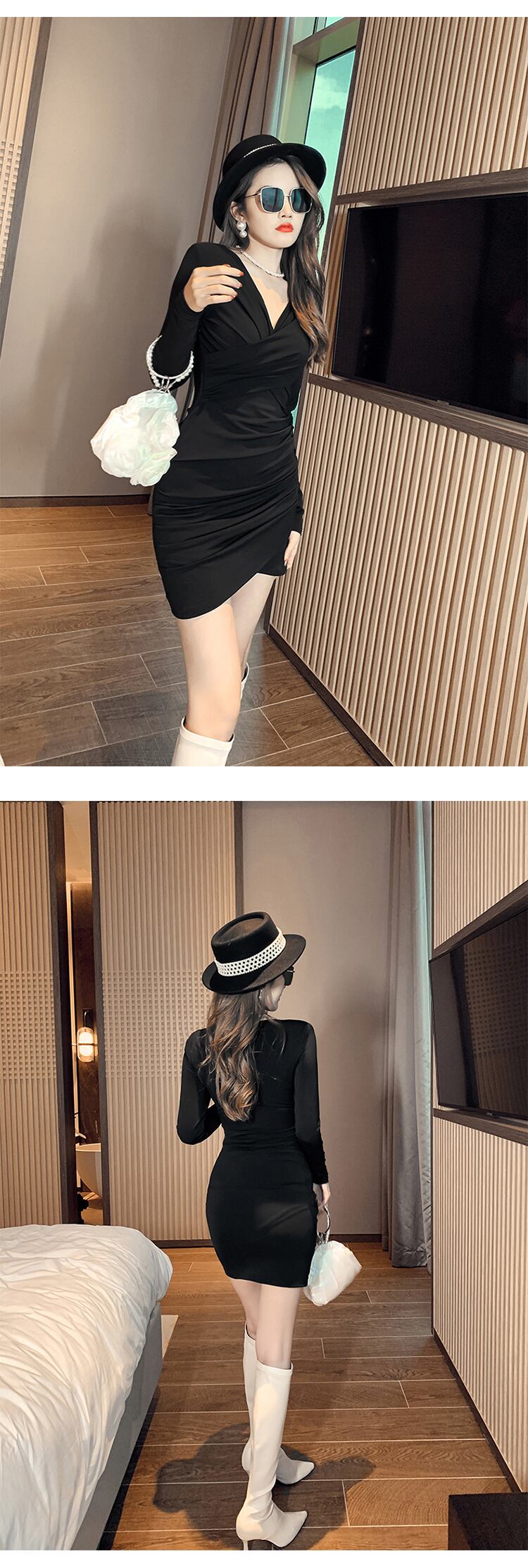 ミニ ブラック レトロ ストリート Vネック MingJieBiHuo17234180604