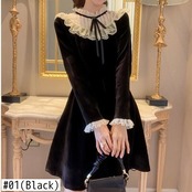 ロング ブラック レトロ レース 長袖 大人ガーリー スウィート キュート カジュアル オータム 秋物 ビンテージ WWJULY78591292079