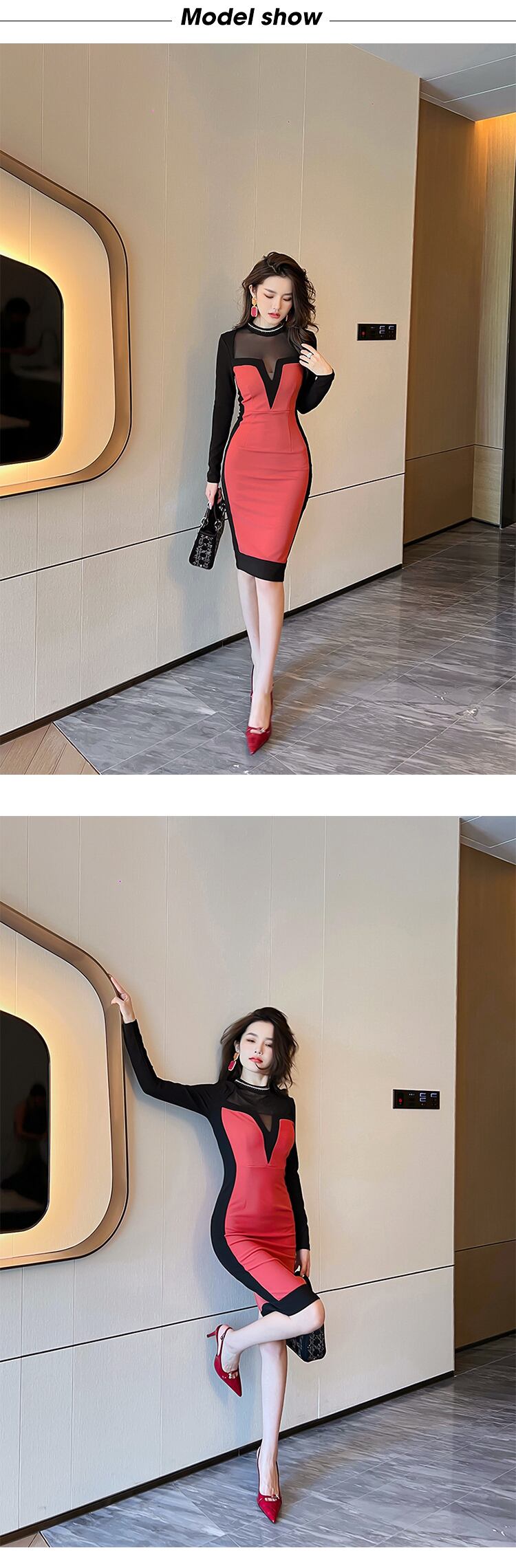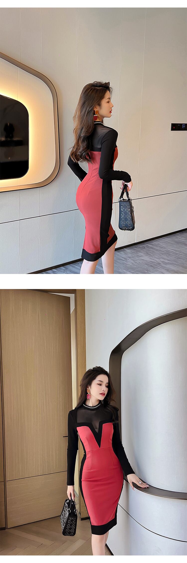 スプリング 春物 オータム 秋物 メッシュ ドレス Oネック MingJieBiHuo46904674062
