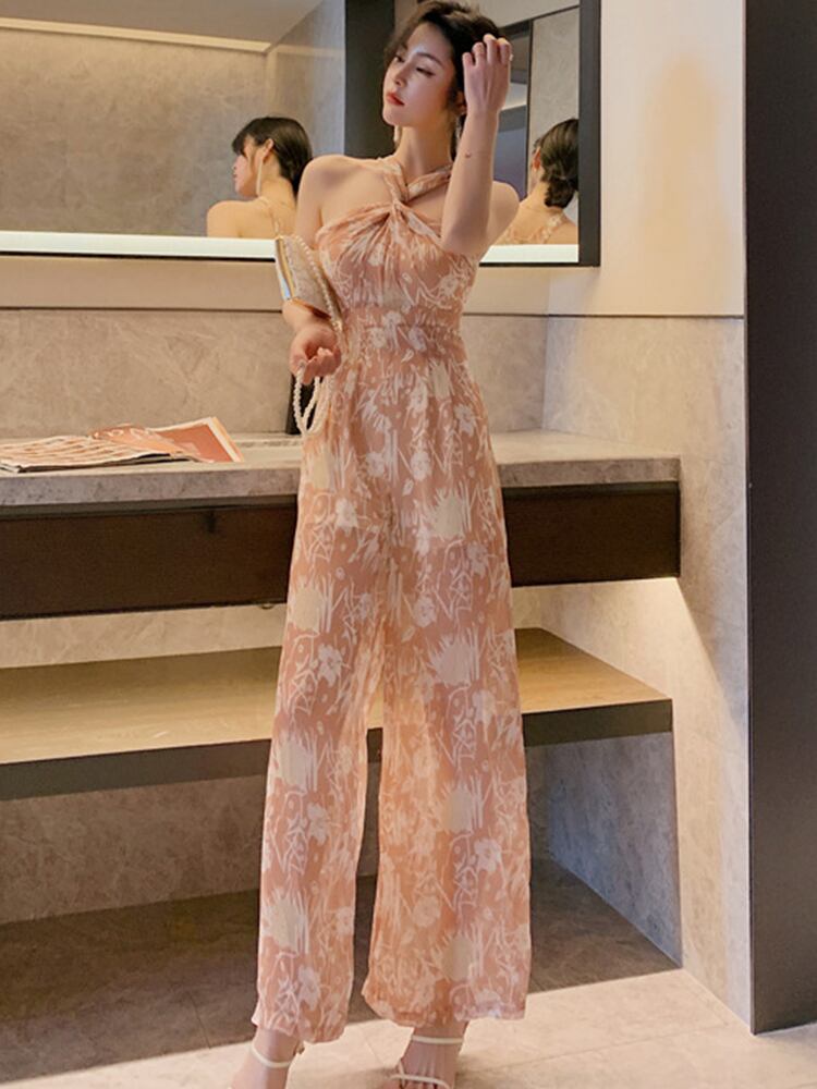 ロング シフォン サマー 夏物 オフショルダー ワイドレッグ ワイドパンツ MingJieBiHuo59833706962