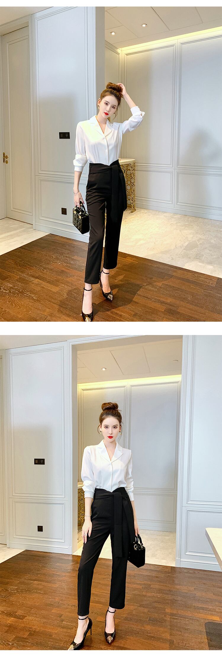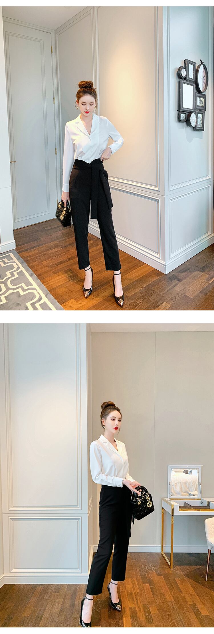 ロング ブラック 長袖 ブラウス ハーネス ベルト 会社 学校 通勤や通学にも MingJieBiHuo6463905421