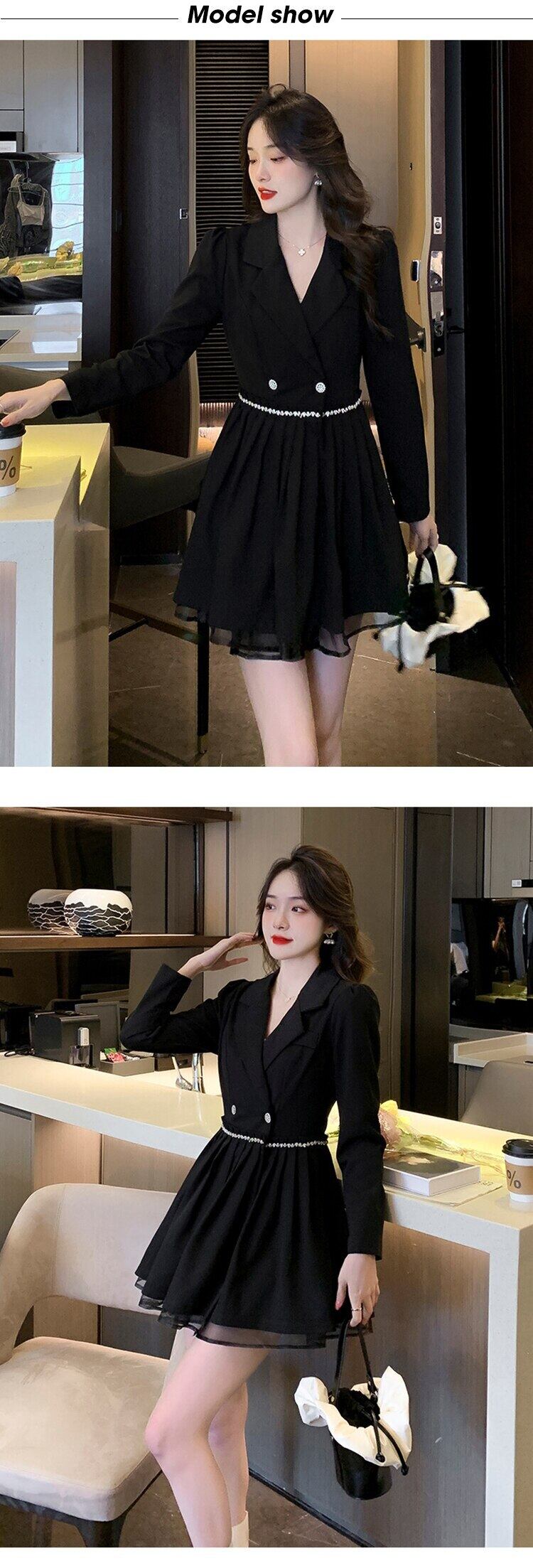 ロング ミニ ブラック レトロ 長袖 ストリート プリーツ スプリング 春物 オータム 秋物 メッシュ ドレス MingJieBiHuo92509173661