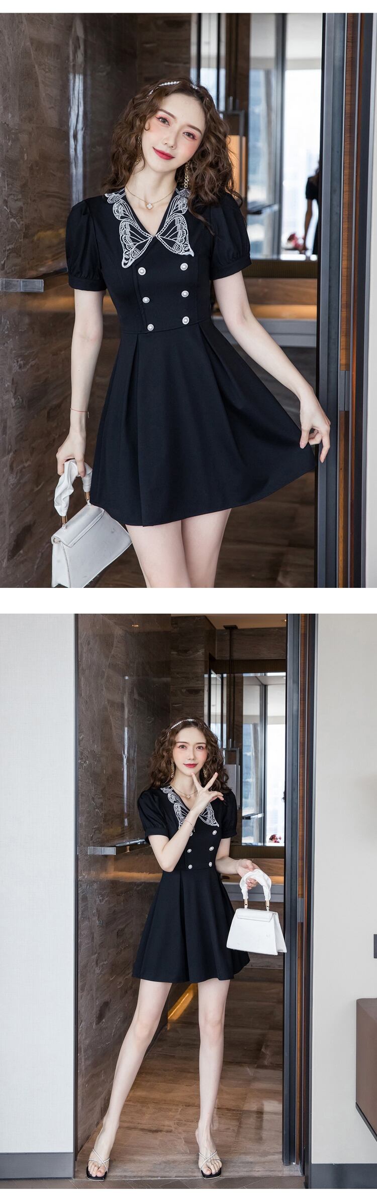ショート ミニ ブラック レトロ 半袖 ハーフスリーブ ストリート エレガント サマー 夏物 ドレス MingJieBiHuo46017188712