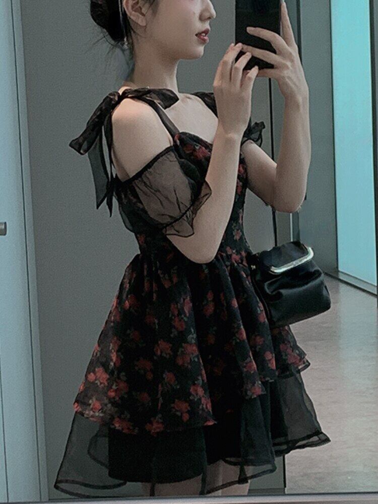 ショート ミニ ブラック リボン サマー 夏物 ビーチ 花柄 WWJULY67308015176