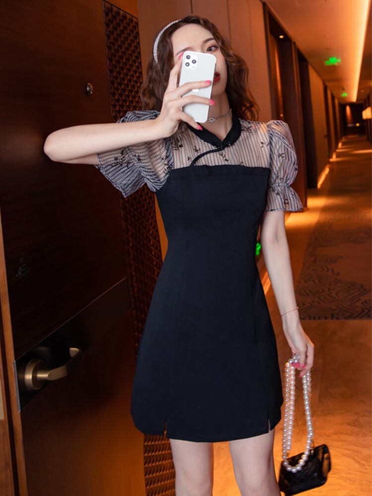 ショート ミニ ブラック 半袖 ハーフスリーブ ストリート ドレス MingJieBiHuo17163905601