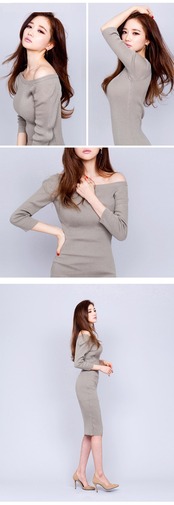 スリム オフショルダー ソリッドカラー MingJieBiHuo73607336005