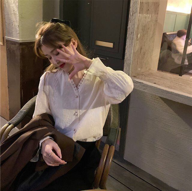 シャツ ブラウス 大人ガーリー スウィート キュート カジュアル スプリング 春物 Vネック ビンテージ 会社 学校 通勤や通学にも WWJULY19735595392