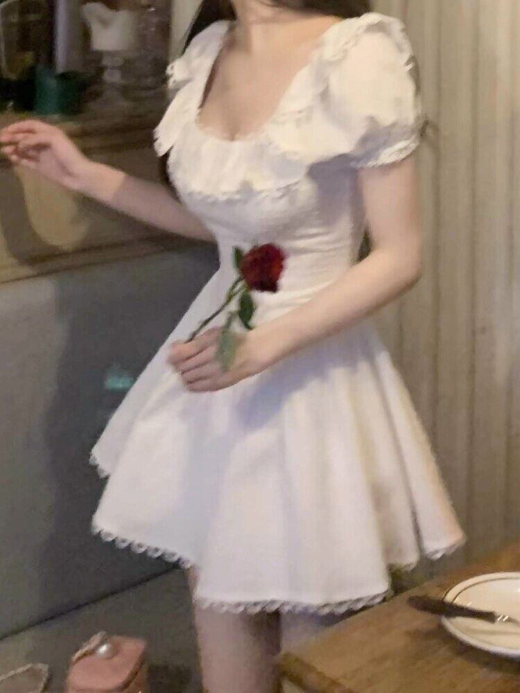 ショート ミニ レース 半袖 ハーフスリーブ 大人ガーリー スウィート キュート カジュアル サマー 夏物 スリム ピュア WWJULY55911548657