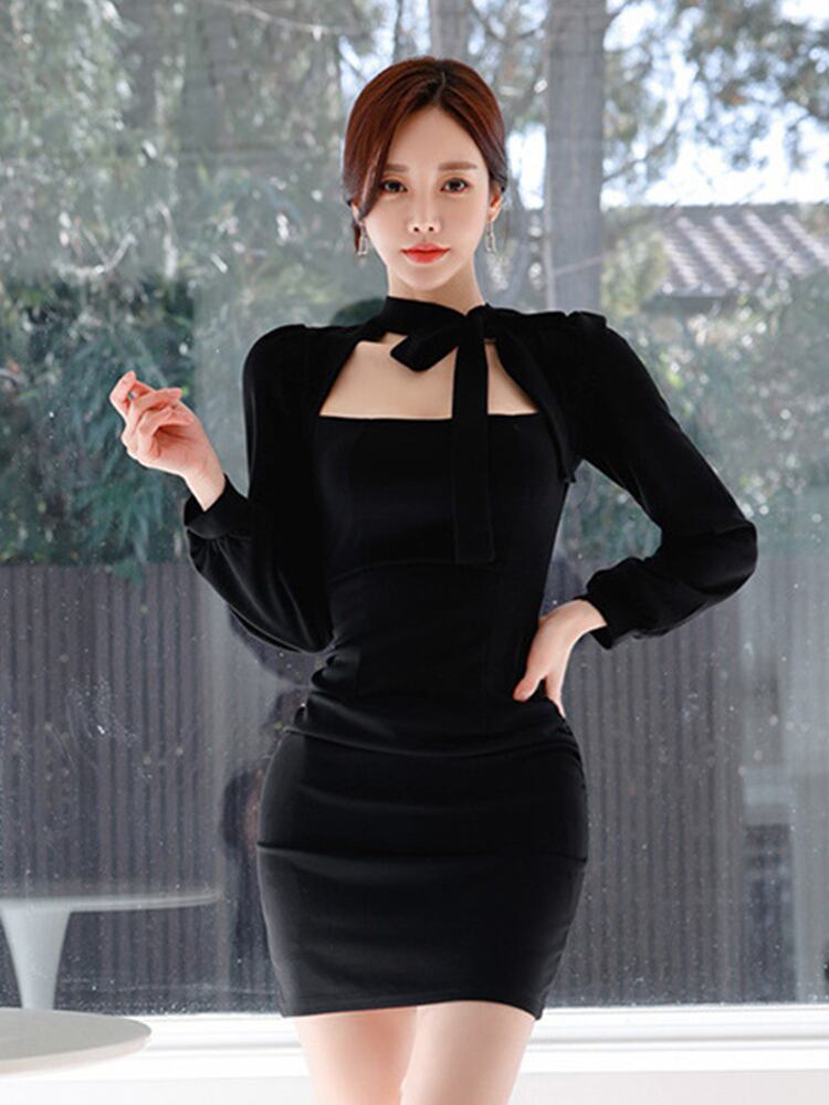ロング ミニ ブラック 長袖 ストリート スプリング 春物 オータム 秋物 ドレス スリム MingJieBiHuo18265775365