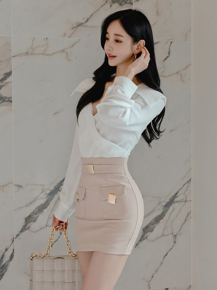 ミニ ホワイト シフォン ブラウス スプリング 春物 オータム 秋物 スカート スリム MingJieBiHuo78392627831