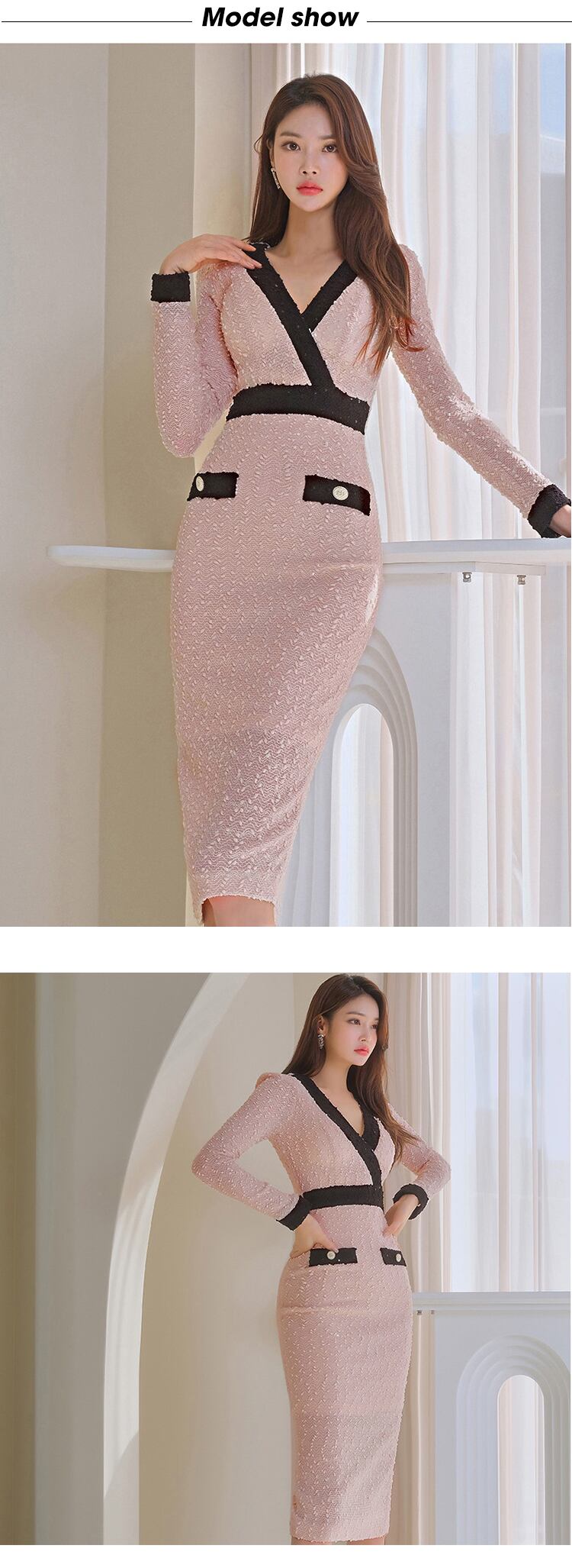 ストリート スプリング 春物 オータム 秋物 ドレス Vネック スリム MingJieBiHuo68453245264