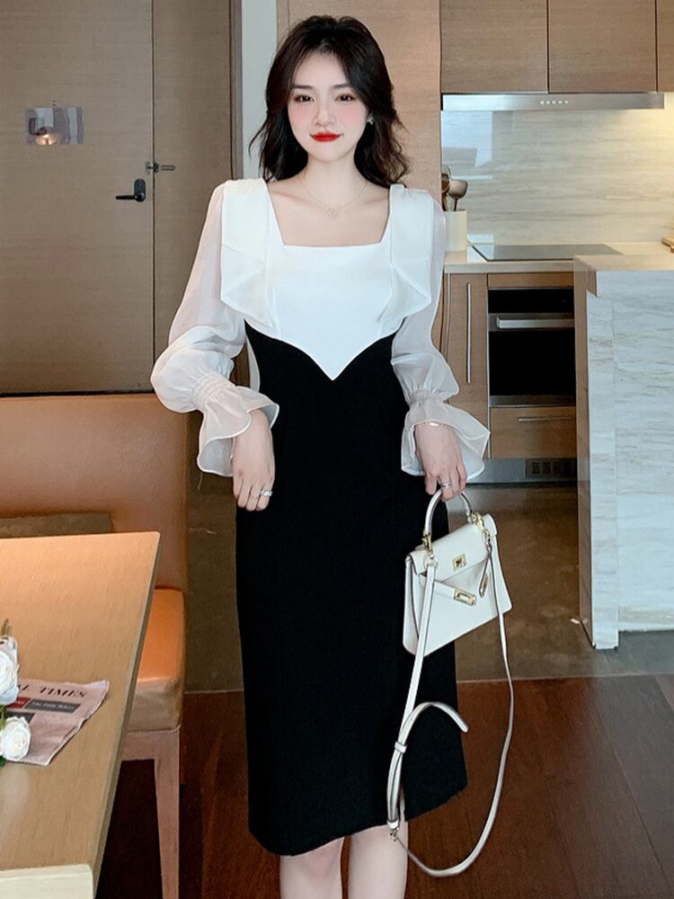 フレアスリーブ ストリート スプリング 春物 オータム 秋物 ドレス スリム MingJieBiHuo81264471604