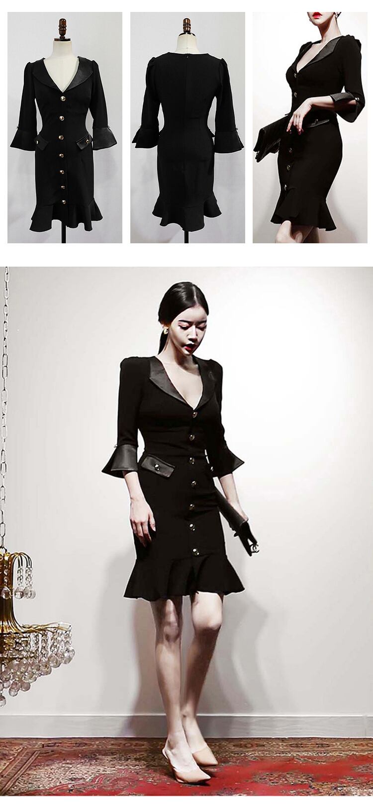 ミニ ブラック エレガント Vネック ビンテージ 会社 学校 通勤や通学にも MingJieBiHuo73215637041