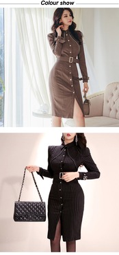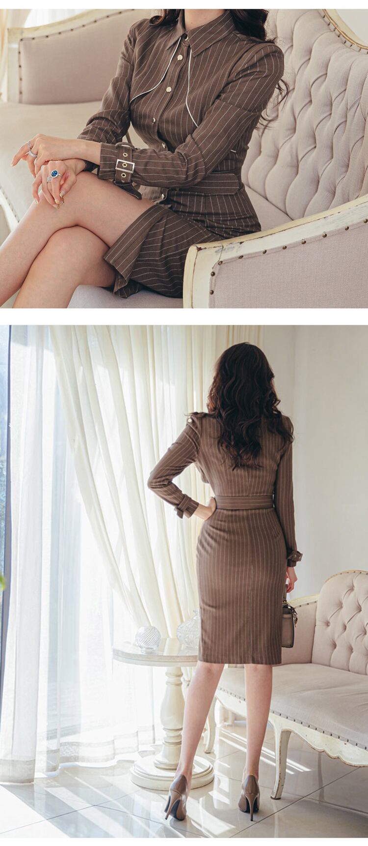 エレガント スプリング 春物 オータム 秋物 ストライプ ビンテージ 会社 学校 通勤や通学にも MingJieBiHuo31908313542
