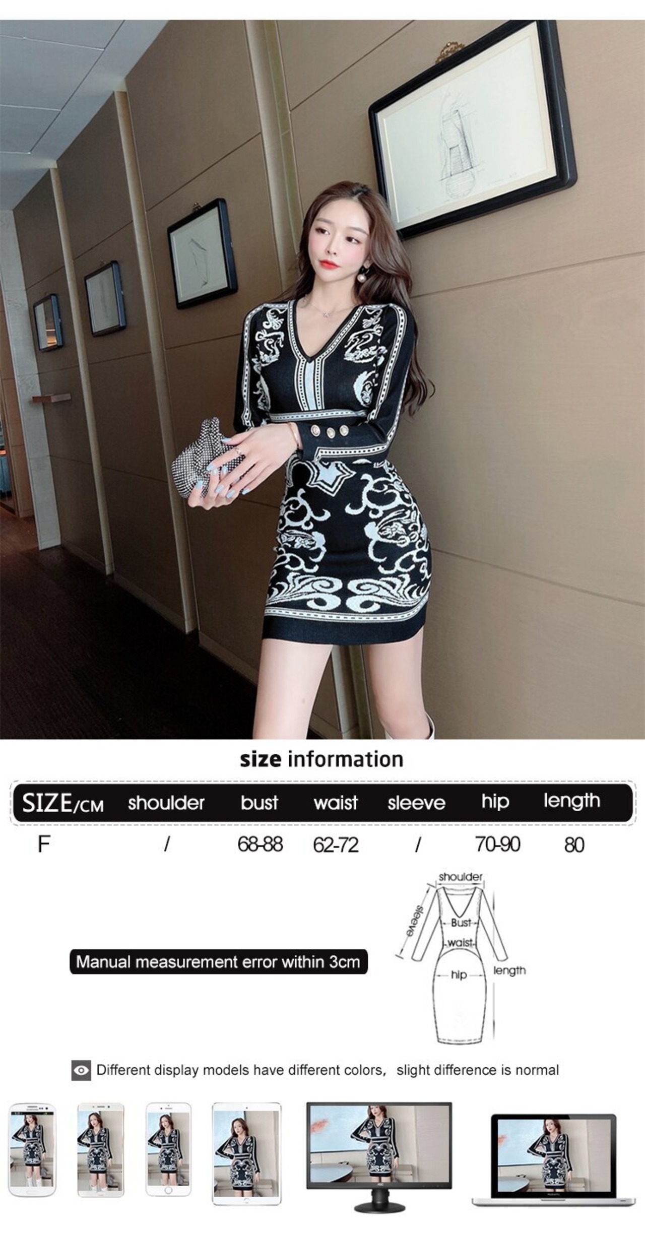 ロング ミニ 長袖 オータム 秋物 ウィンター 冬物 花柄 Vネック ビンテージ MingJieBiHuo74332343945