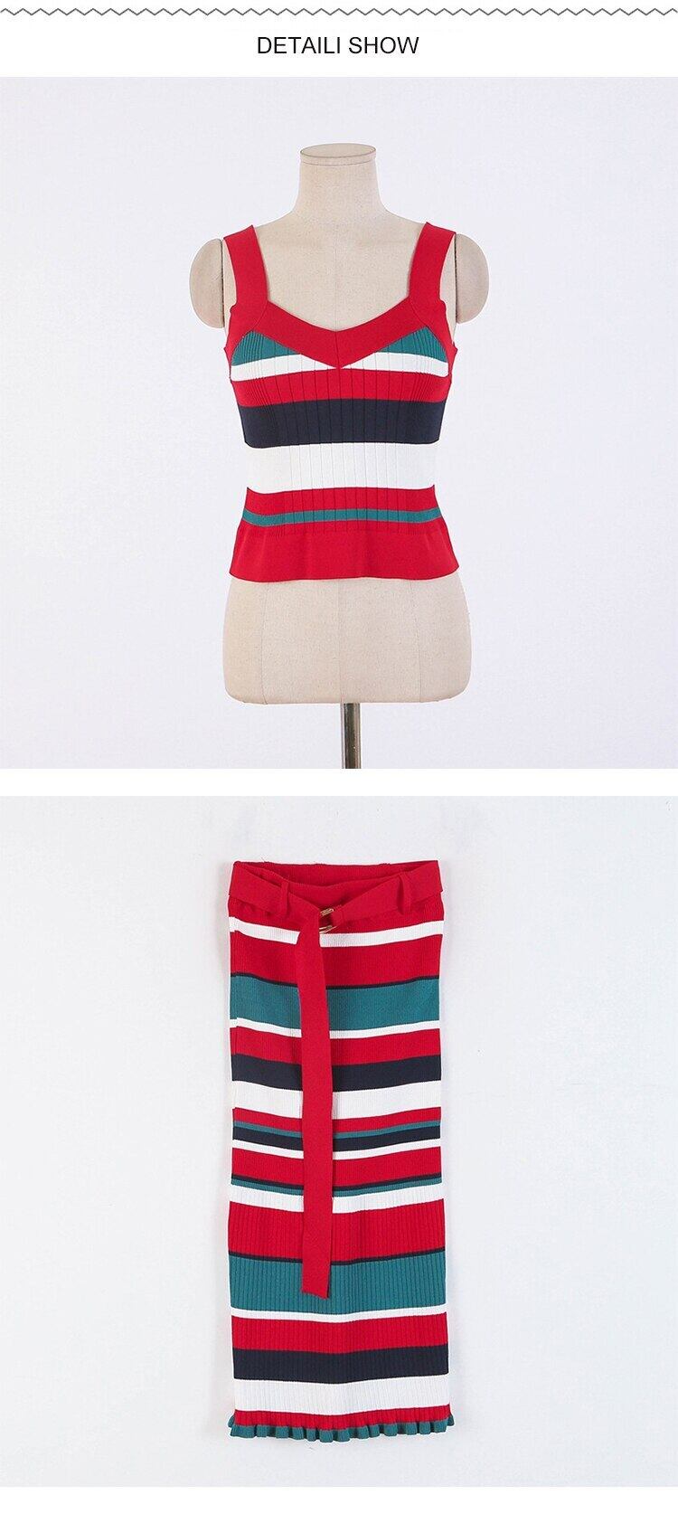 ストリート サマー 夏物 ハーネス ベルト ノースリーブ スカート ストライプ スリム MingJieBiHuo42590853020