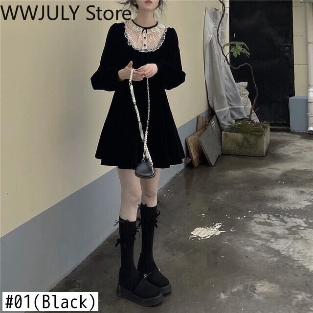 ロング ミニ ブラック レース 長袖 ウィンター 冬物 ビンテージ WWJULY85139207846