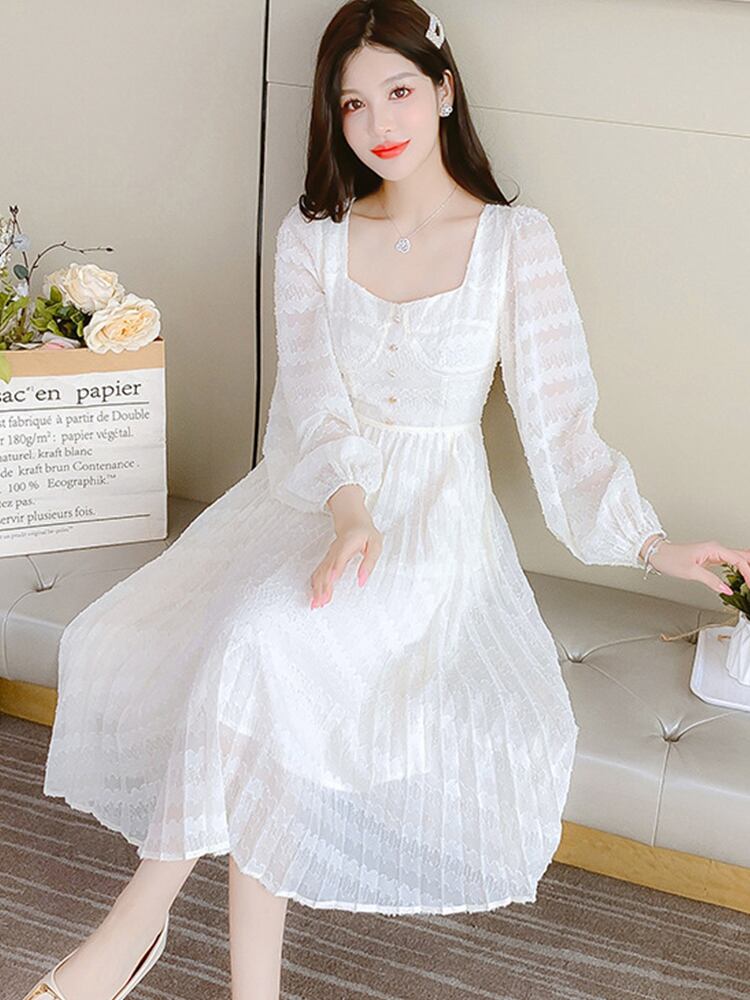 シフォン ストリート 大人ガーリー スウィート キュート カジュアル スプリング 春物 オータム 秋物 ドレス スリム スクウェア MingJieBiHuo21101159914