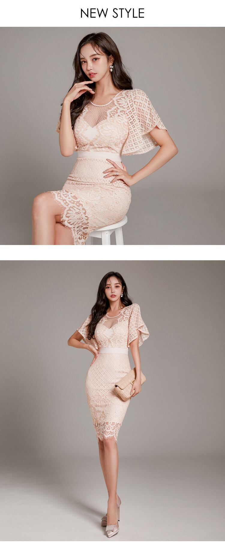 ショート レース 半袖 ハーフスリーブ 大人ガーリー スウィート キュート カジュアル サマー 夏物 ドレス スリム MingJieBiHuo88307176479
