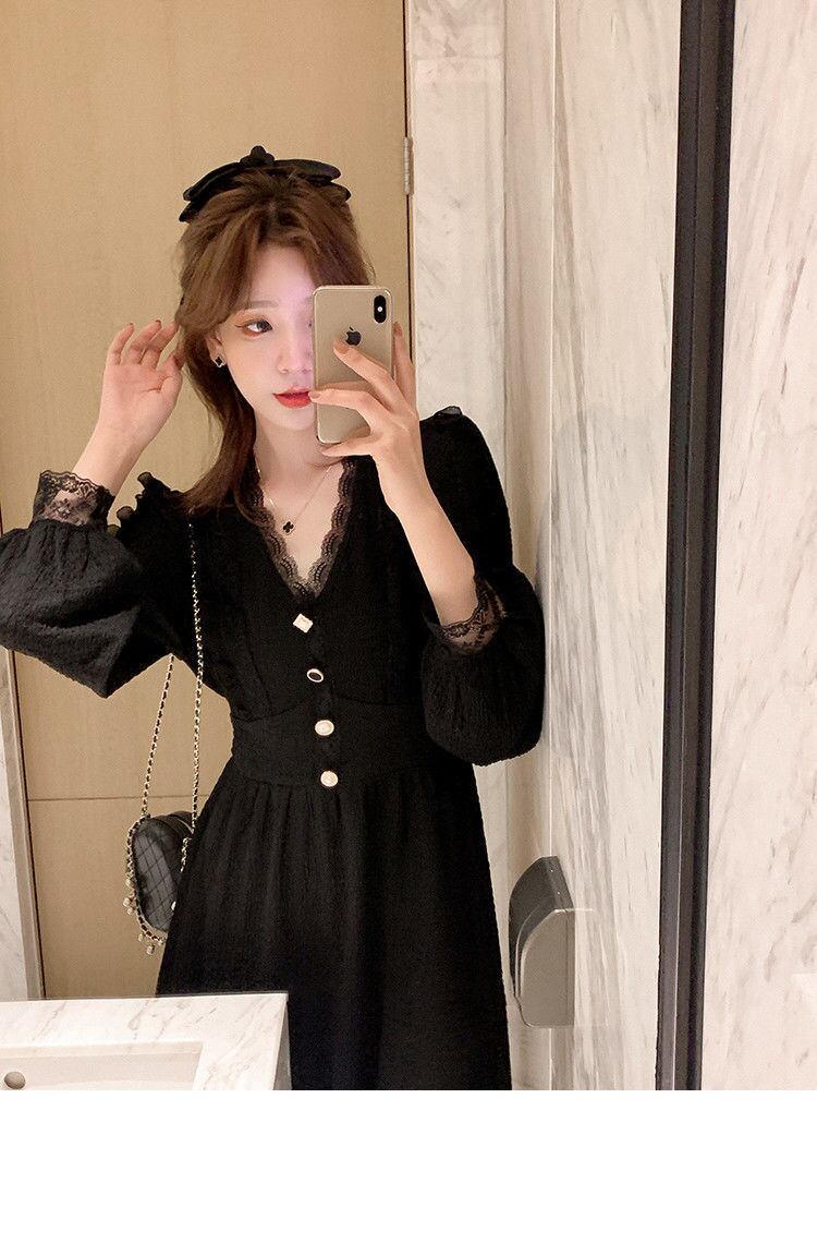 ロング ブラック レース 長袖 サマー 夏物 Vネック ビンテージ 会社 学校 通勤や通学にも WWJULY60899850682