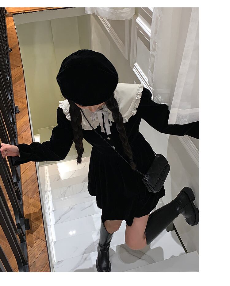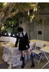 ロング ミニ ブラック リボン 長袖 大人ガーリー スウィート キュート カジュアル スプリング 春物 スリム WWJULY69345663970