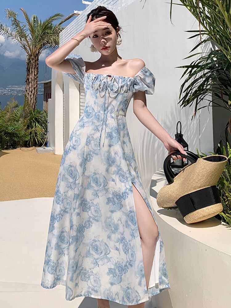 レトロ サマー 夏物 ドレス スリム MingJieBiHuo55497729407