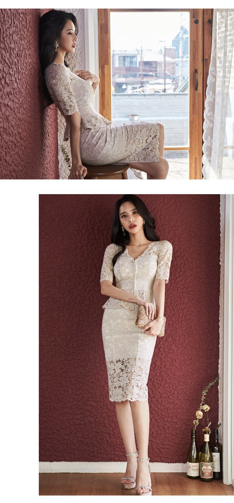 ショート 半袖 ハーフスリーブ エレガント サマー 夏物 スカート Vネック 会社 学校 通勤や通学にも MingJieBiHuo31041708832
