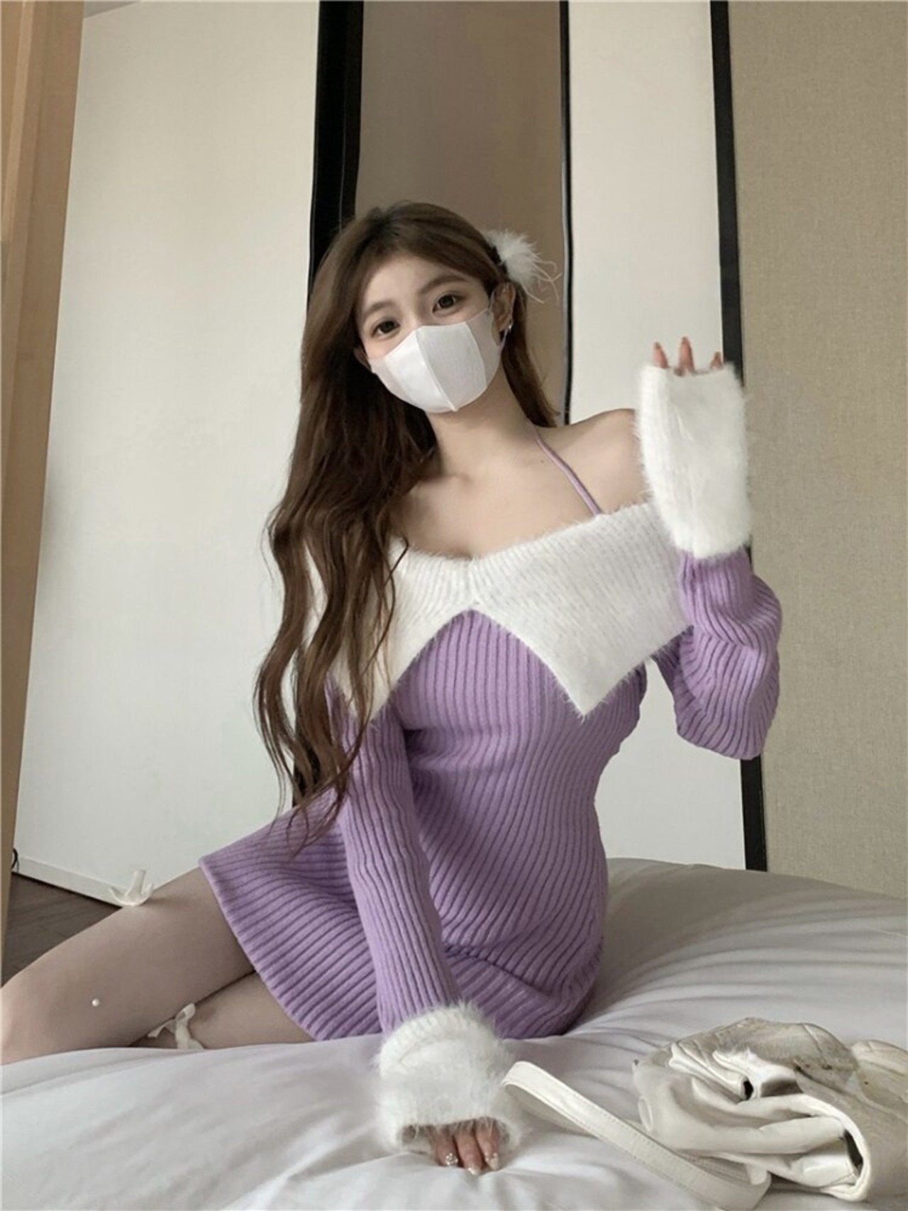 ミニ ウィンター 冬物 スリム オフショルダー ソリッドカラー WWJULY26223999798
