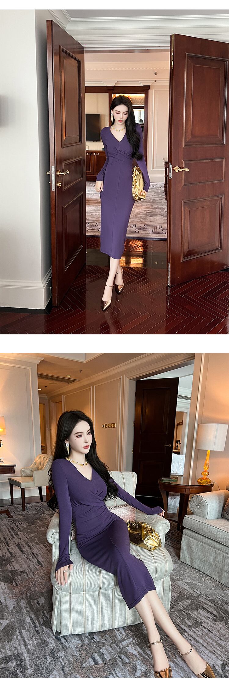 ストリート スプリング 春物 オータム 秋物 ドレス Vネック MingJieBiHuo48571389968
