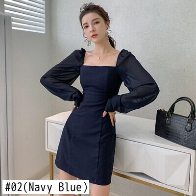 ショート ミニ ランタンスリーブ ストリート ソリッドカラー スクウェア ビンテージ MingJieBiHuo10527010065