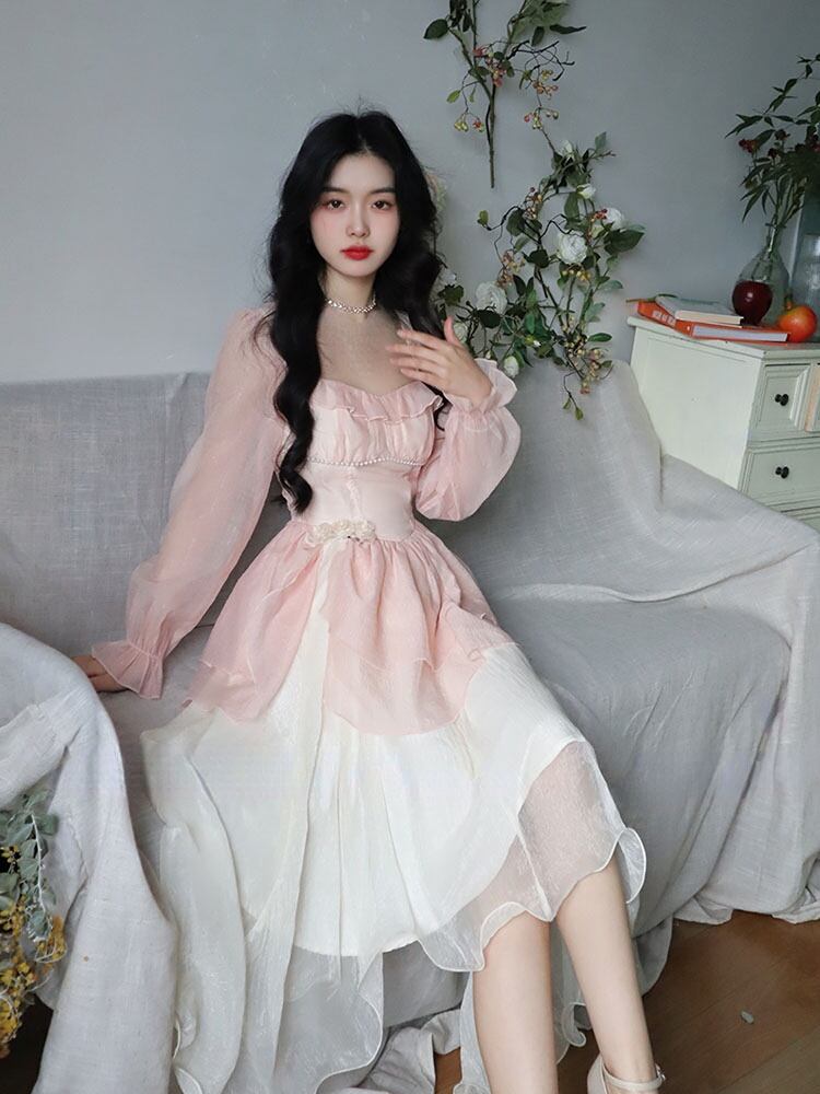 ロング シフォン 長袖 大人ガーリー スウィート キュート カジュアル サマー 夏物 ビーチ ソリッドカラー WWJULY82566531829