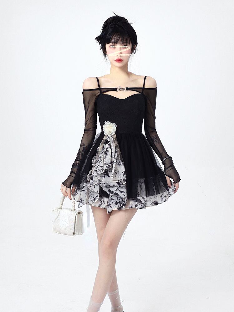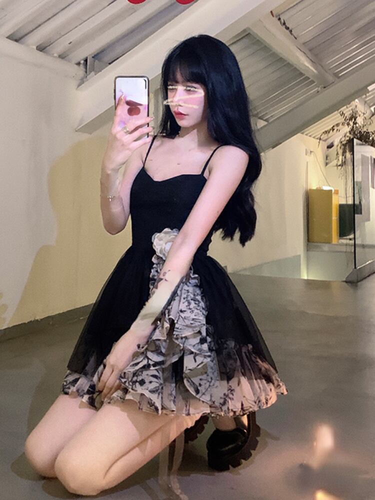 ミニ ブラック サマー 夏物 ノースリーブ 花柄 スリム ビンテージ WWJULY44472716697
