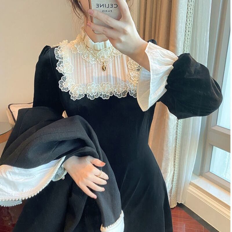 ブラック レトロ レース 大人ガーリー スウィート キュート カジュアル オータム 秋物 スリム WWJULY39627304836