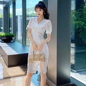 ホワイト レース ストリート 刺繍 大人ガーリー スウィート キュート カジュアル Vネック ビンテージ MingJieBiHuo58167271003