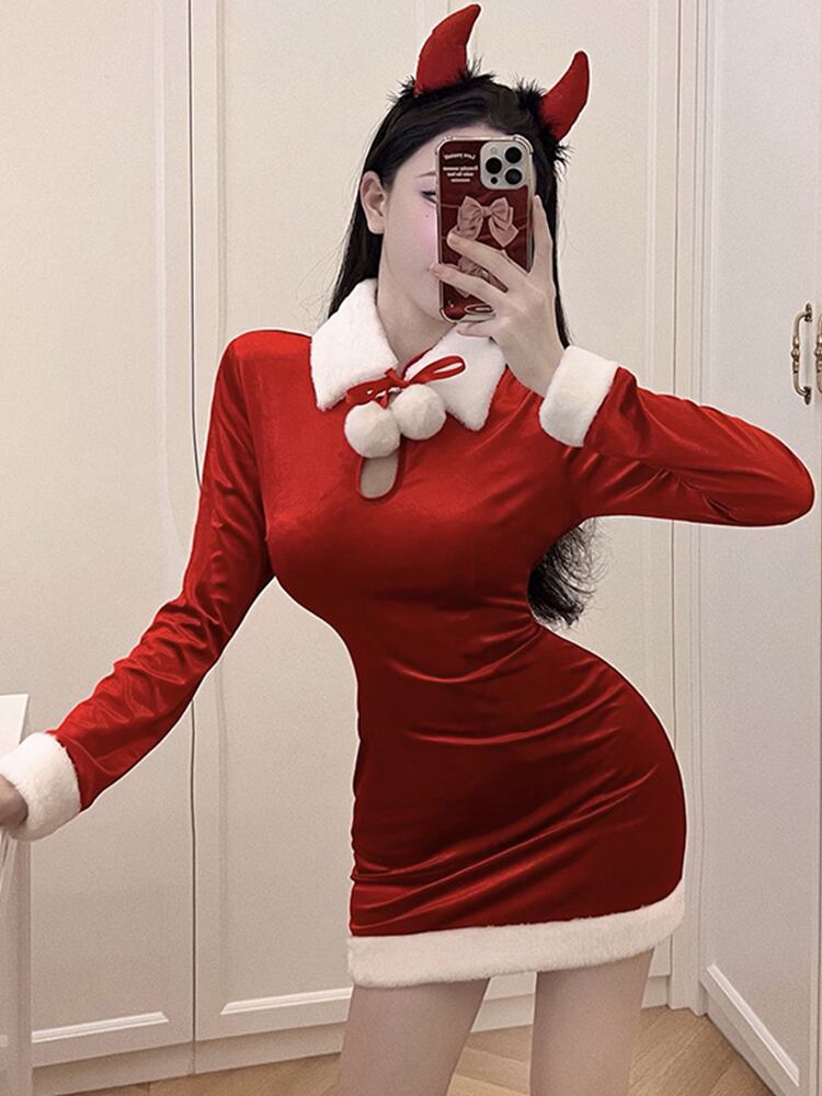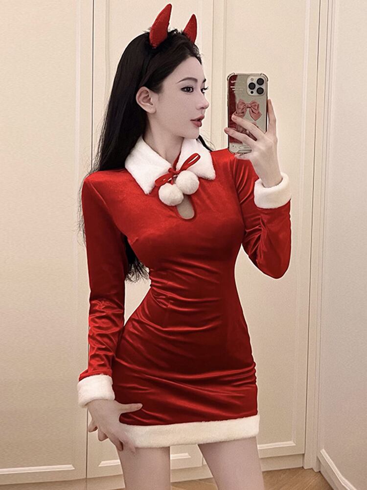 ミニ レッド 大人ガーリー スウィート キュート カジュアル オータム 秋物 ウィンター 冬物 ドレス MingJieBiHuo7836023485