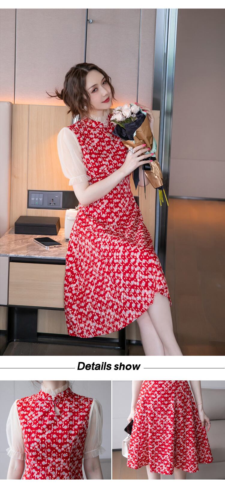 ショート ミニ 半袖 ハーフスリーブ ストリート 大人ガーリー スウィート キュート カジュアル メッシュ ドレス ビーチ 花柄 MingJieBiHuo47890944906