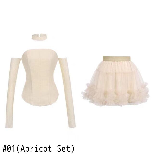 色:01(アプリコットセット),02(ブラックセット),03(黒ブラウス),04(アプリコットスカート),05(アプリコットブラウス),06(黒のスカート)