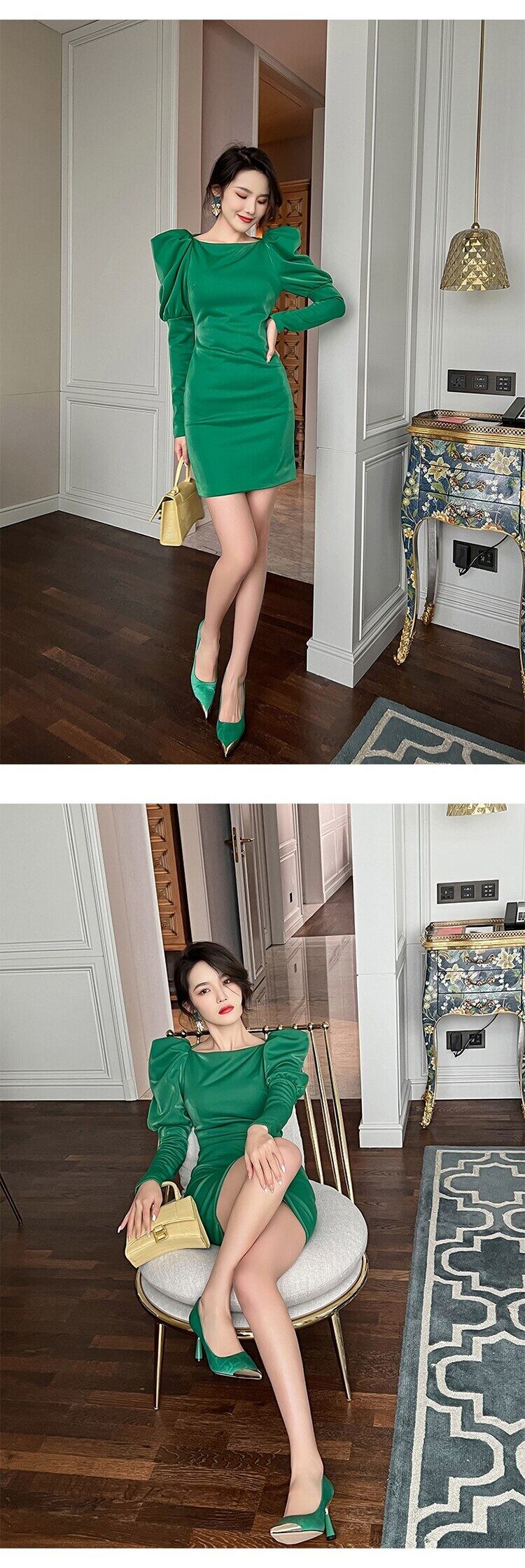 ミニ ドレス Oネック グリーン MingJieBiHuo6770206171