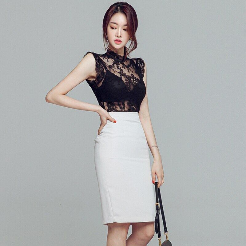 ブラック レース ブラウス ノースリーブ スカート ビンテージ MingJieBiHuo1583635718