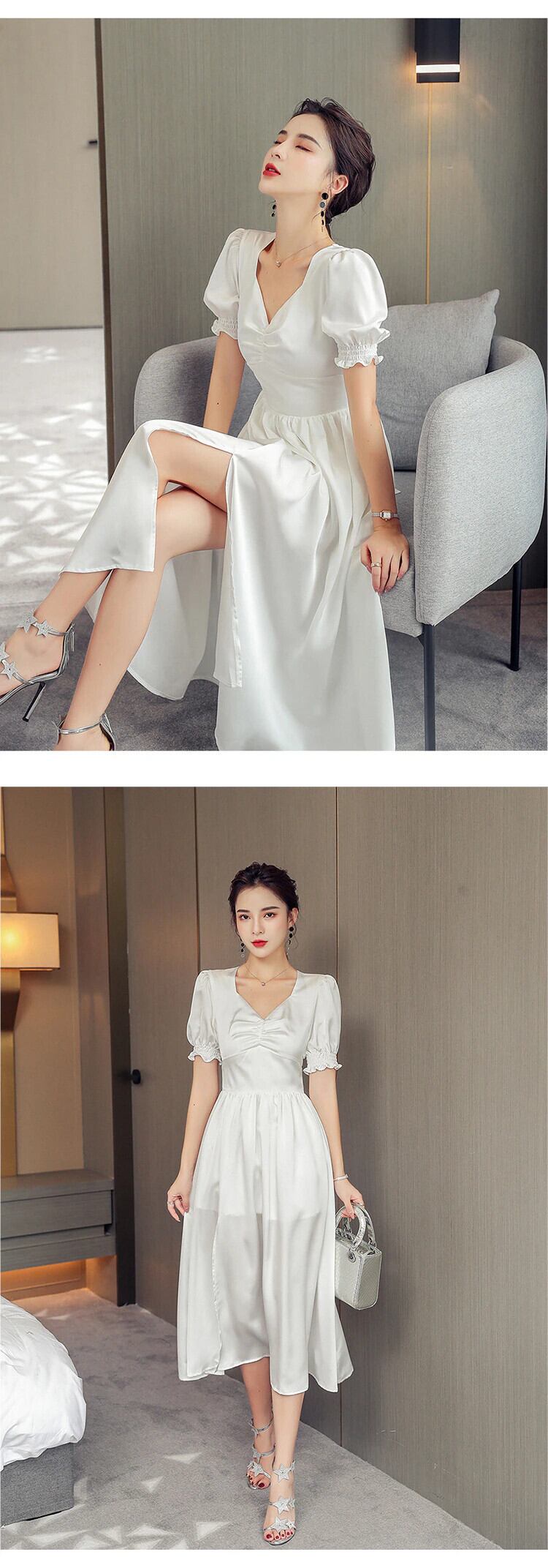 ショート ホワイト シフォン 半袖 ハーフスリーブ エレガント サマー 夏物 Aライン スクウェア 会社 学校 通勤や通学にも MingJieBiHuo85949141936