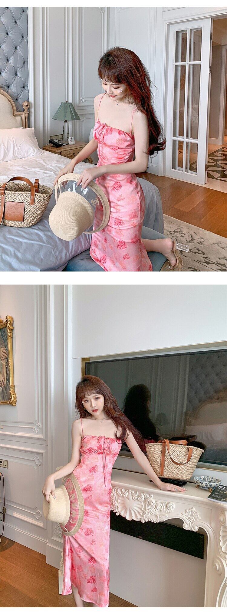 ビーチ ノースリーブ 花柄 サテン ビンテージ MingJieBiHuo45952514680