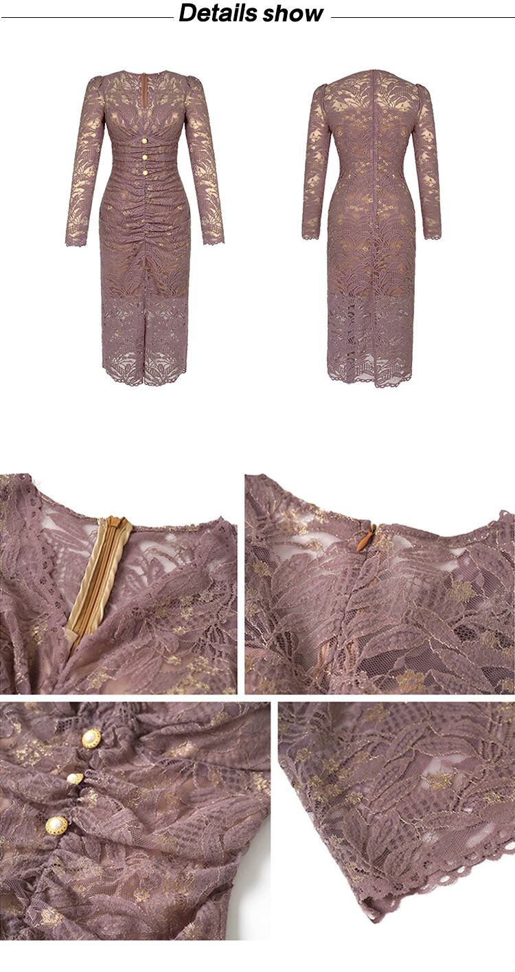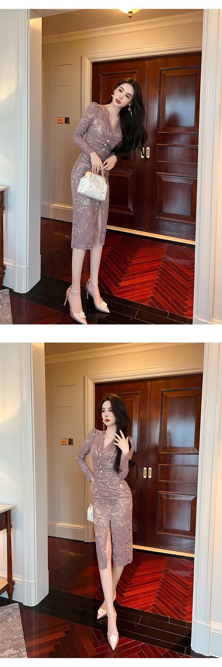レース スプリング 春物 オータム 秋物 ドレス Vネック スリム MingJieBiHuo3980691803
