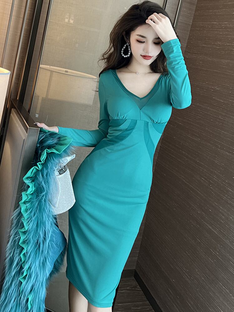 ストリート スプリング 春物 オータム 秋物 ドレス Vネック MingJieBiHuo20793892425