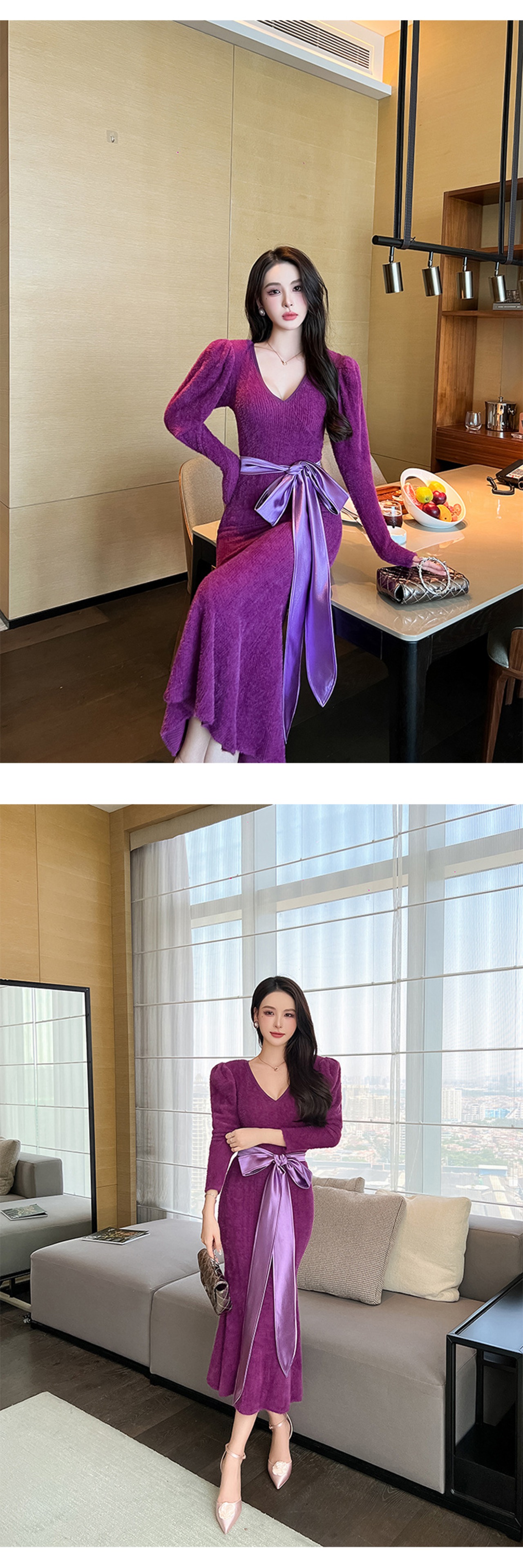 オータム 秋物 ウィンター 冬物 ドレス Vネック MingJieBiHuo95397760531
