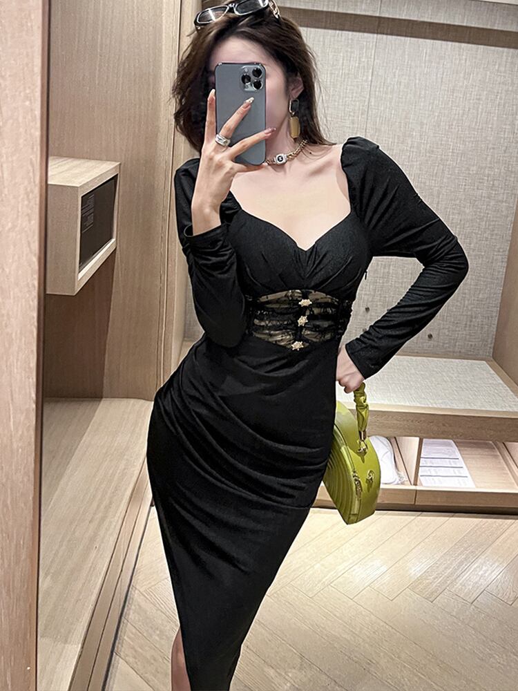 ブラック コルセット スプリング 春物 オータム 秋物 ドレス MingJieBiHuo68785716665