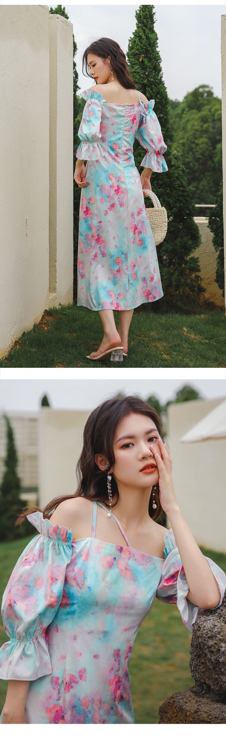 ストリート サマー 夏物 ビーチ 花柄 オフショルダー ビンテージ MingJieBiHuo73768114786