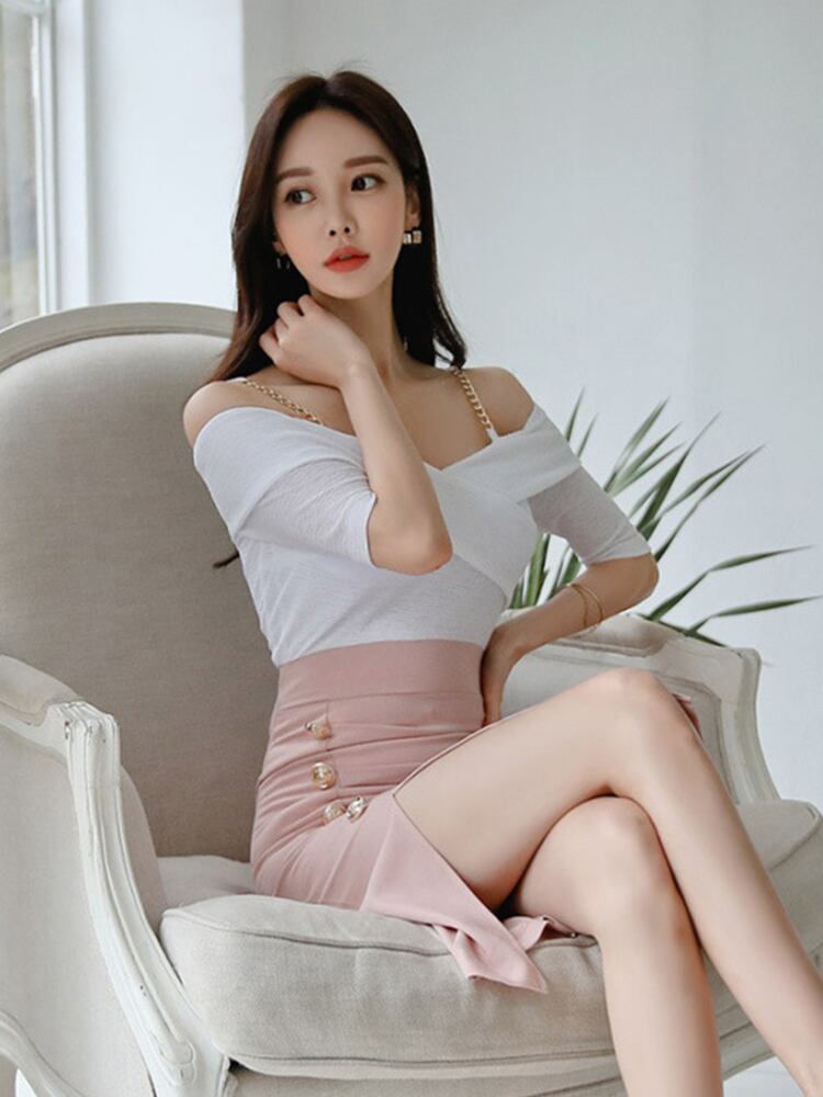 ストリート サマー 夏物 ドレス スリム オフショルダー MingJieBiHuo77389120203